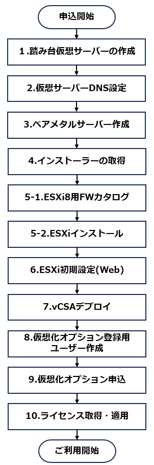 - 本ページ記載の情報はKDDI固有の設定項目と、仮想化オプションを構築する上での標準的な手順を記載しております。VMware vSphereの設計はお客さまの要件に合わせて適宜構築を実施ください。