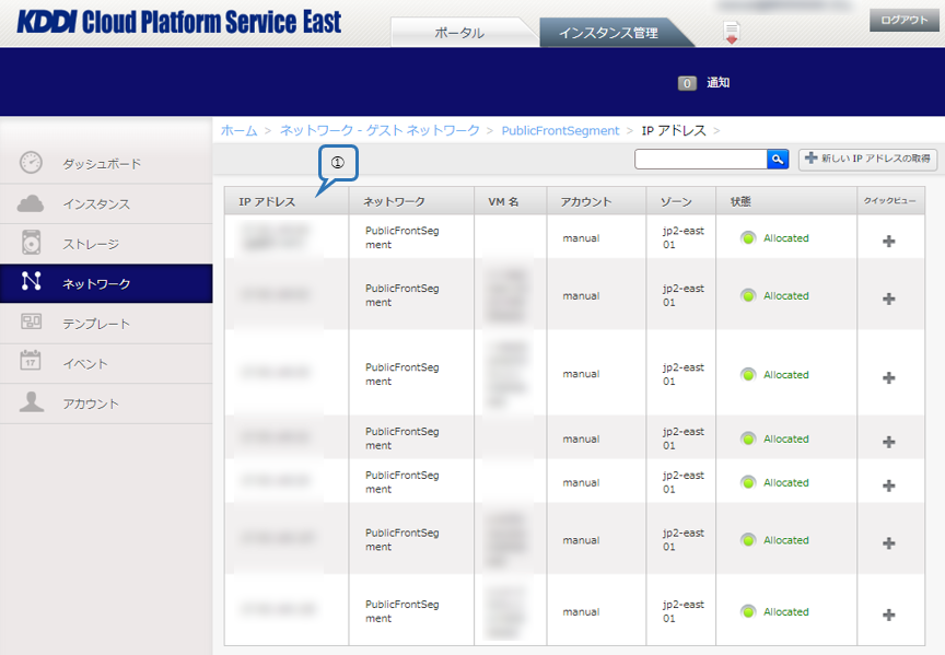 3.ネットワーク一覧が表示されるので、(3)「PublicFrontSegment」を選択します。